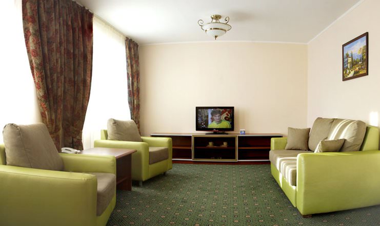 Одни из лучших номеров санатория находятся с 2 по 4 этаж. Они имеют 2 комнаты и занимают площадь 52 кв.м.