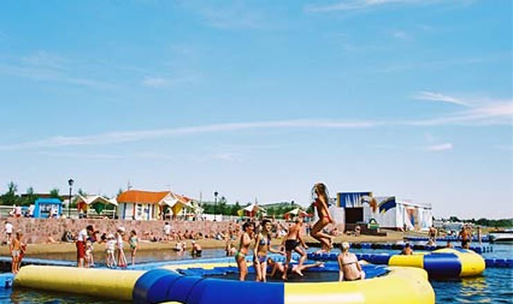 Здесь можно расслабиться в русской бане и сауне с бассейном, поиграть в бильярд и настольный теннис. Для детей есть аттракционы, батут, аквапарк и клуб с игровыми автоматами.
